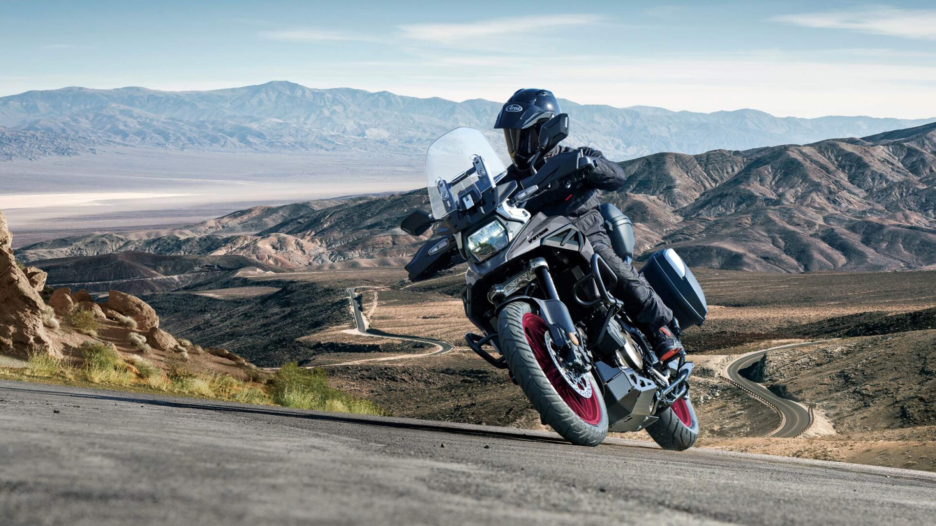De V-STROM 1050 is nu nog controleerbaarder en voorspelbaarder. Zo zorgt het Suzuki Intelligent Ride System (S.I.R.S.), aangestuurd door een 6-assige IMU, ervoor dat je met nog meer vertrouwen en gemoedsrust rijdt, of je nu grote afstanden aflegt, bagage meeneemt of de geplaveide wegen verlaat. Met de Suzuki Drive Mode Selector (SDMS) kies je tussen drie verschillende motorkarakteristieken om de prestaties van de V-STROM 1050 af te stemmen op jouw voorkeuren en/of de rijomstandigheden. Hill Hold activeert de achterrem gedurende 30 seconden nadat je bij het omhoog rijden op een helling bent gestopt. Dit zorgt ervoor dat je soepeler kunt wegrijden zonder je zorgen te maken dat de motor achteruit rolt. Het Load Dependent Control System herkent verschillen in belading op elk moment en past de remdrukken automatisch aan. Het Slope Dependent Control System past de remdruk aan om achterwiellift op een steile helling te voorkomen. tijdens lange ritten. Suzuki Traction Control System (STCS) voorkomt dat het achterwiel doorslipt bij acceleratie. Je kunt de gevoeligheid van dit systeem in drie verschillende modi instellen of het systeem uitschakelen. Met het Bi-Directional Quick Shift System kun je zowel op- als terugschakelen, zonder dat je de koppelingshendel bedient. En als je die wel gebruikt, dan zorgt Suzuki Clutch Assist System (SCAS) voor een lichte en nauwkeurige bediening.